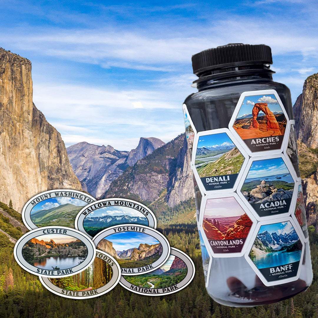 We have tons of vibrant, weather-proof, vinyl National Park, State Park and National Monument Stickers. Display your travels with pride and style!