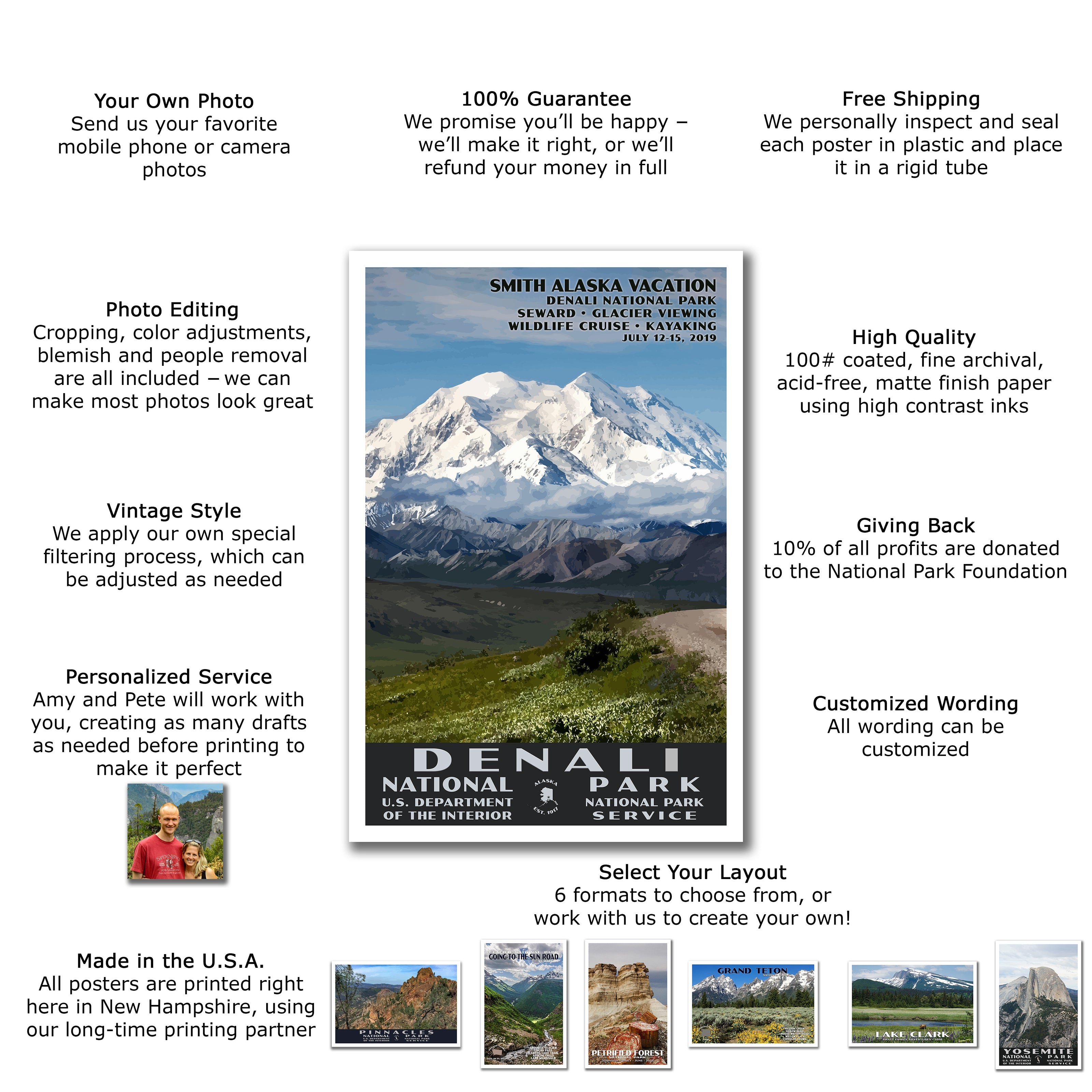 Join the thousands of customers who have worked with Amy & Pete to create their own custom travel memory. We create vintage travel posters (including wood prints and canvas prints) and vintage national park posters using your photo from anywhere in the world!